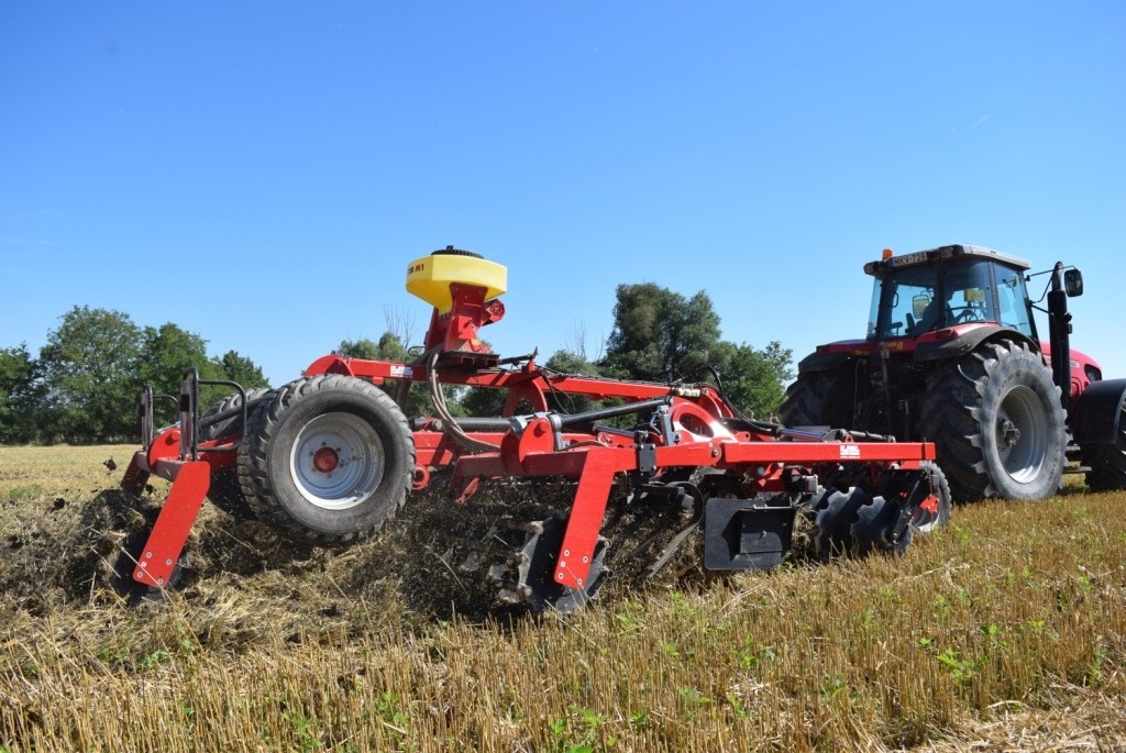 Short disc cultivator is equipped with two rows of discs mounted on forged tines with maintenance-free bearings. Each pair of discs is protected against overloading by reliable system of rubber silentblocks which guarantees firm hold for each working unit. Optimal working depth is 5–18 cm which makes the cultivator suitable for minimization technology, classic ploughing system or grassland revitalization.