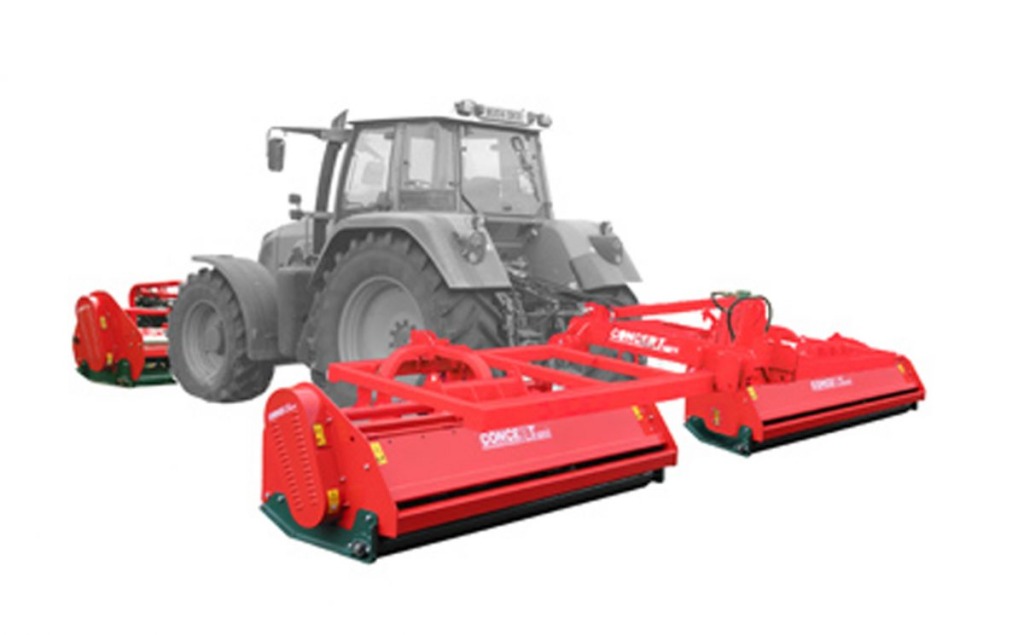 Butterfly flail mower with the possibility of obtaining a working width of 8.20 m.