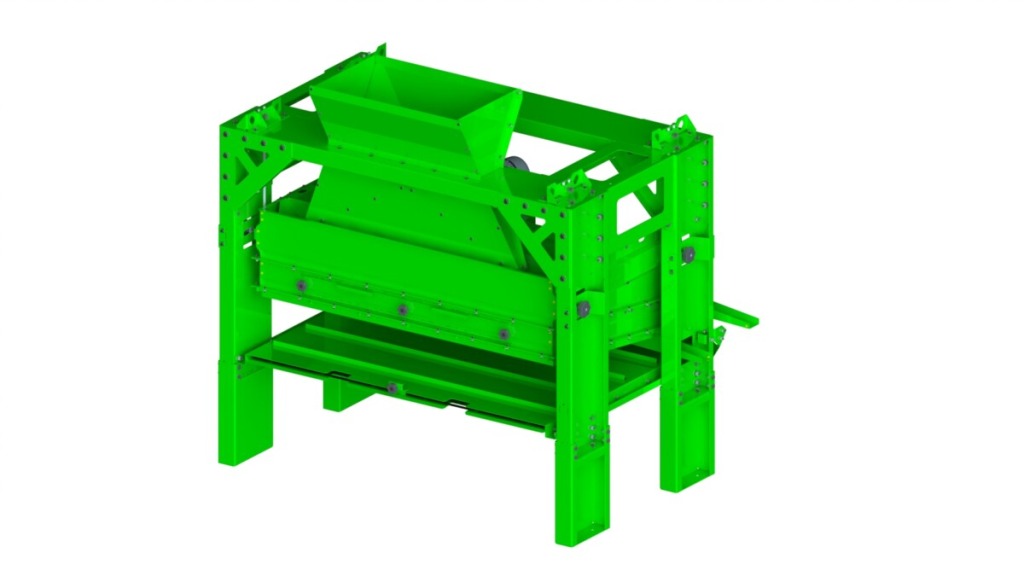 The DSC-40 double screen grain cleaner is a highly productive bi-axial machine with two vibrating screens designed for pre-cleaning advanced various grains of large and small impurities. On the first sieve with larger holes, the DSC separates the large impurities from the starting material – straw, spikelets, stones, clods of soil, etc., directing them to the side chute. In turn, the bottom screen with smaller holes filters out light impurities such as dust, chaff, pieces of straw, grain, etc. as they head into the second chute, while the heaviest grain is directed through the large front chute, showing high efficiency when working with the following cultures: wheat, corn, oats, flax, barley, rye, millet, sorghum, peas, soy, beans, lentil, buckwheat, rape, mustard, sunflower, coffee beans.