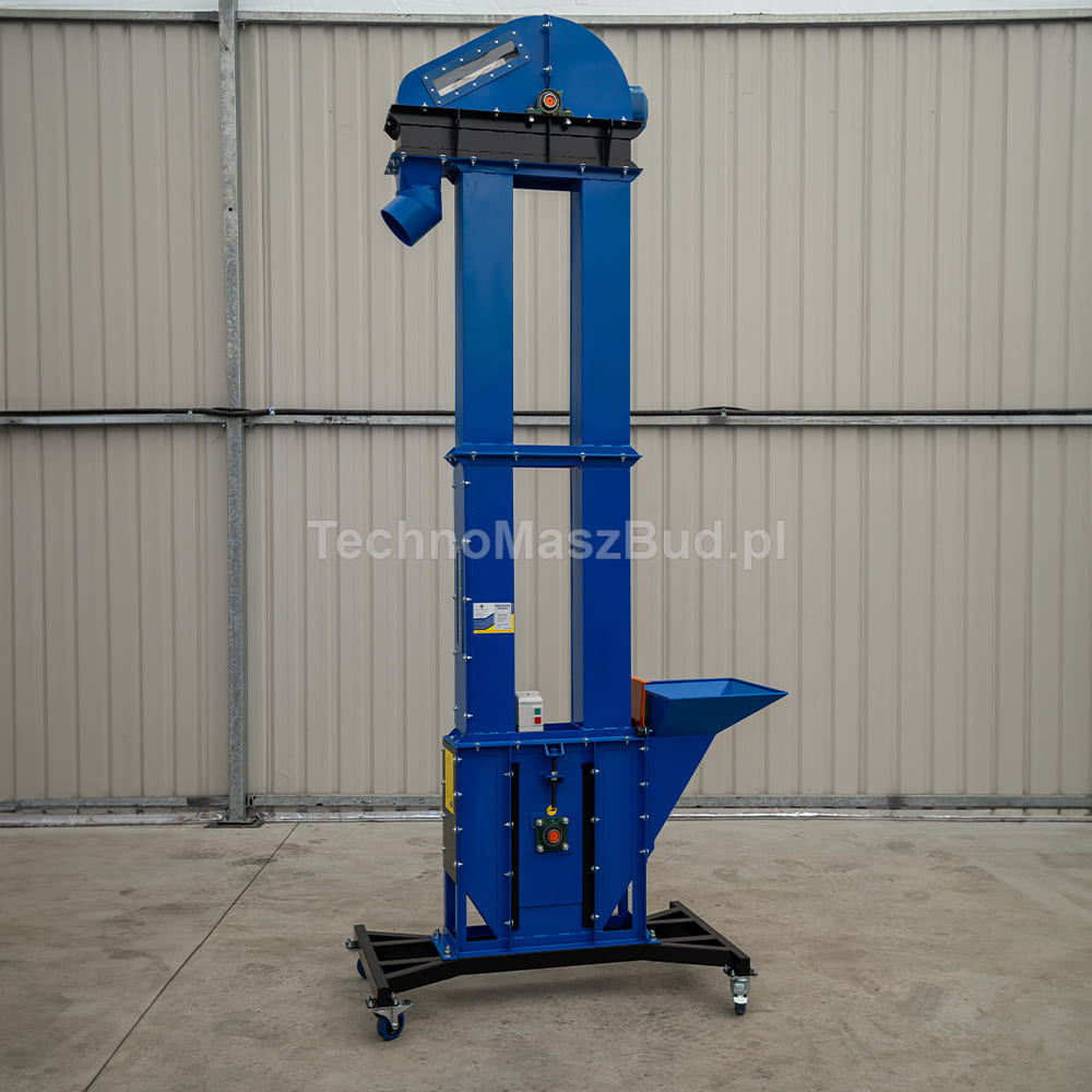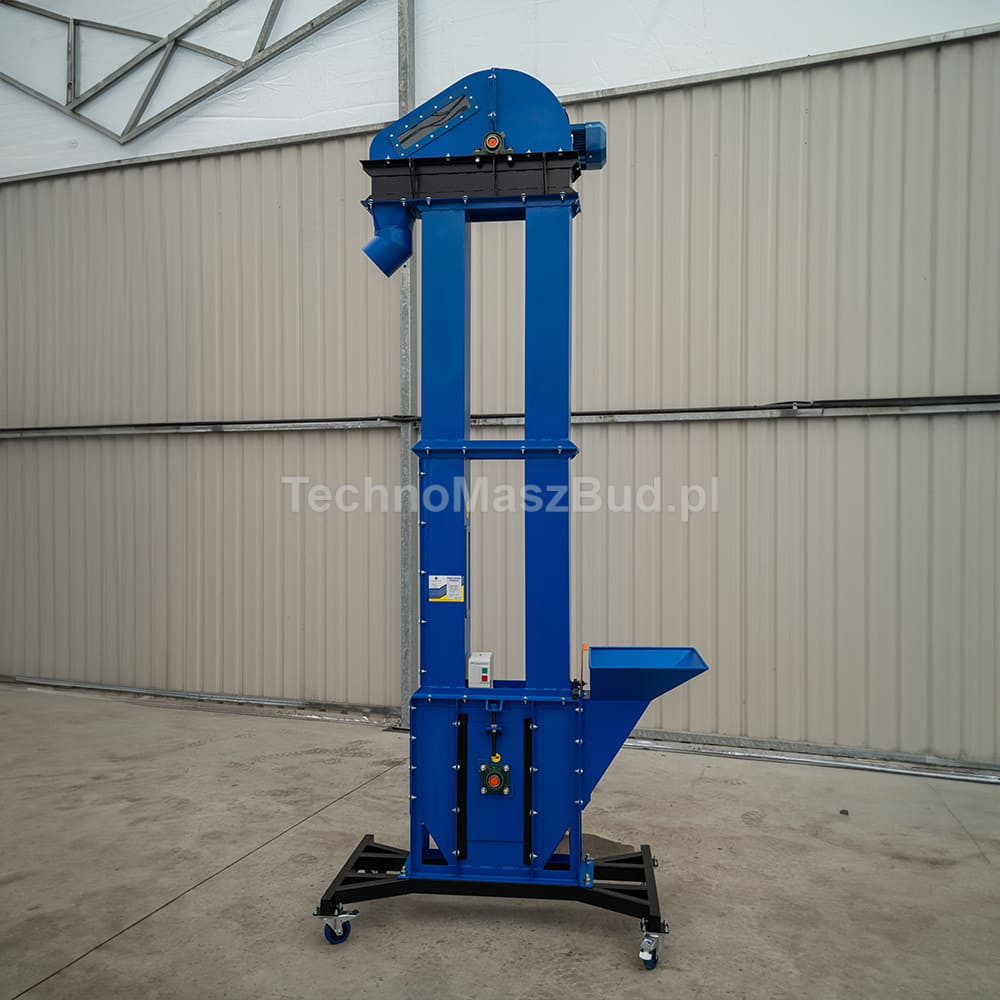 PK-250 bucket elevator is a reliable machine designed for vertical transport of bulk materials. The model is equipped with an efficient 1.5 kW motor and runs on 400 V power, ensuring smooth and stable conveying of raw materials such as grain, feed, pellets, or other granulates.