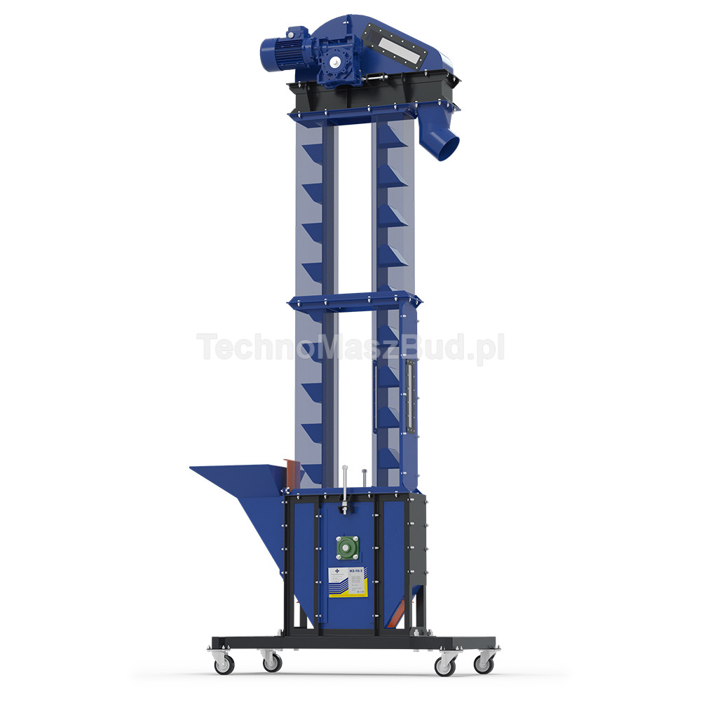 The PK-250 bucket elevator can be used for vertical transport of various bulk materials—grain, seeds, feed, as well as pellets. This model is perfect for handling stages of processes such as feed and pellet production, both on farms and in industrial plants—where performance and reliability are required.