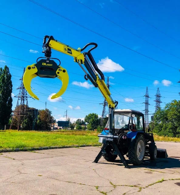 Use of the DL Agro manipulator is suitable for such tractor brands as BELARUS, JOHN DEERE, CASE, CLAAS, NEWHOLLAND, XTZ etc. (hydraulic system of tractor categories 1.4, 2) with 3-point hitches and it is highly efficient when coupled with the 4-6 tones trailer. Thus, the DL Agro manipulator can work perfectly well within a self-loading trailer system. The DL Agro boom consists of 3 parts, the 2nd one is telescopic and the last section is hand-adjusted for working space enlargement.