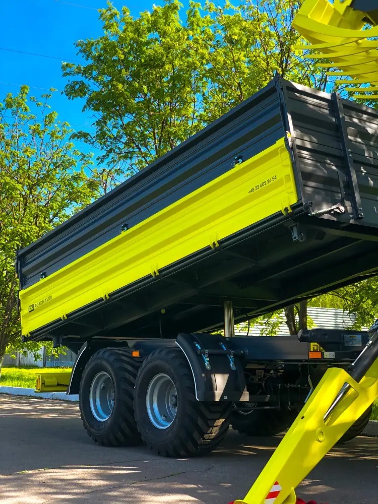 The DLAGROMASTER is farming dump trailer (10 t, 10m3) with the crane-manipulator (1 t/5.6 m.) The double girder reinforced frame and biaxial spring tandem FAD (Italy) increase reliability of performance the DLAGROMASTER afield and in other hard conditions. There are two options of loading platform: the Big Bag flatbed trailer or dump trailer with 3 sides unloading.