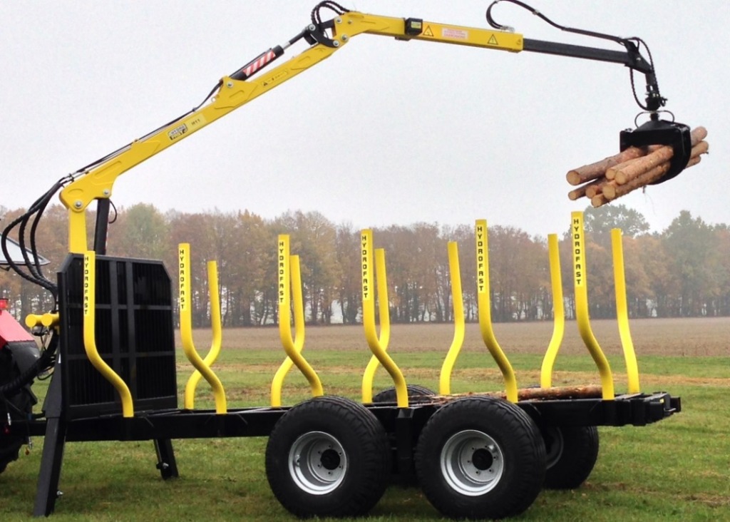 Miško priekaba HYDROFAST 11 tonų su 7 m kranu.